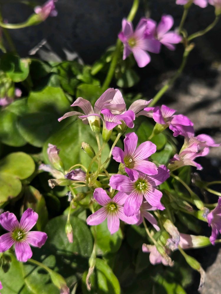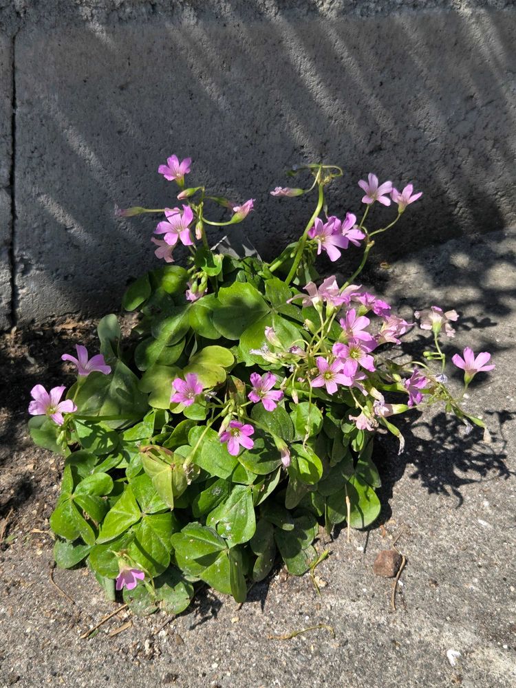 ムラサキカタバミの花が セメントの隙間に咲いてます~💓♥️❤