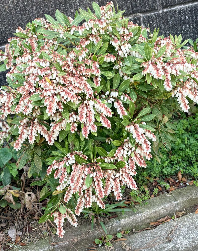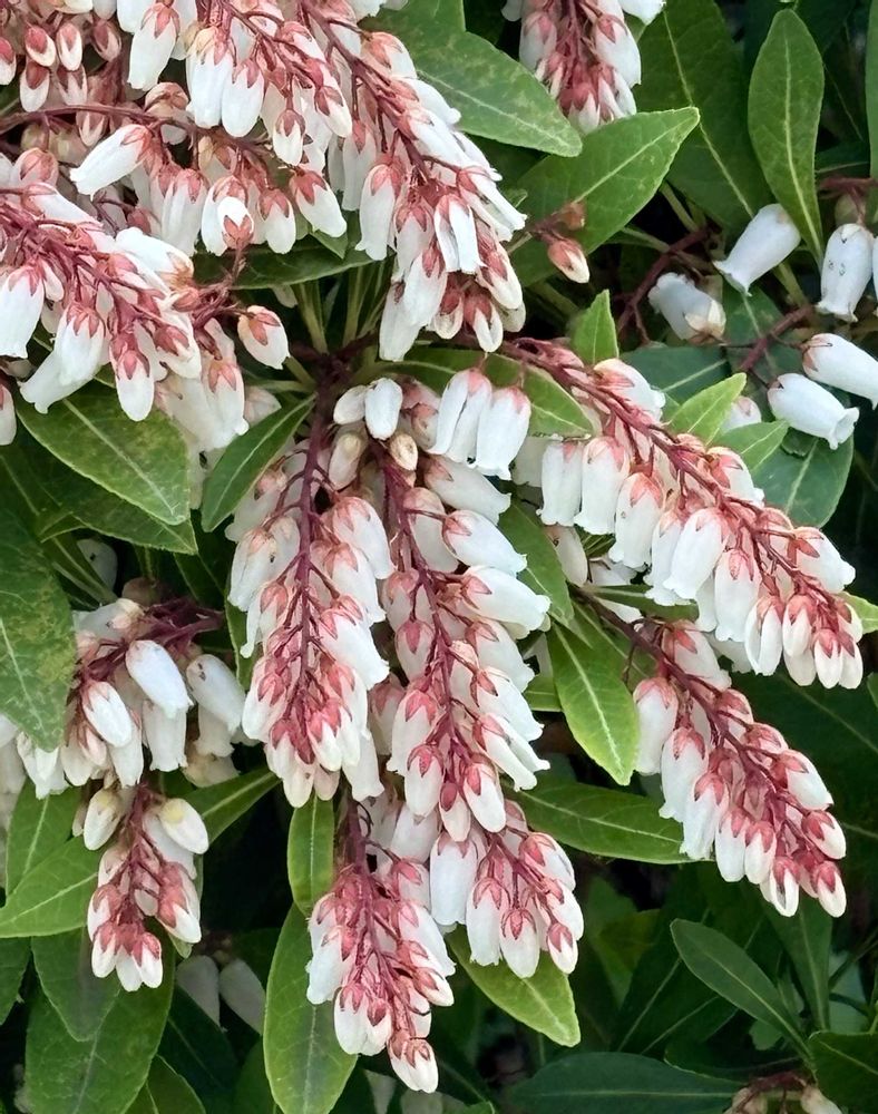 ◎道路側道沿いに、余り見たことのない色の『アセビ』さんが咲いていましたァ。😊