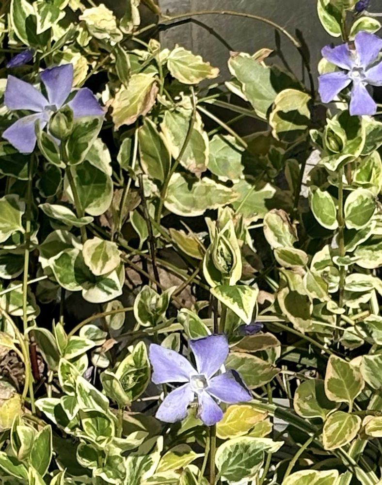 ◎道路側道沿いに『ツルニチニチソウ』さんが、花数少ないですが咲いていまたァ。