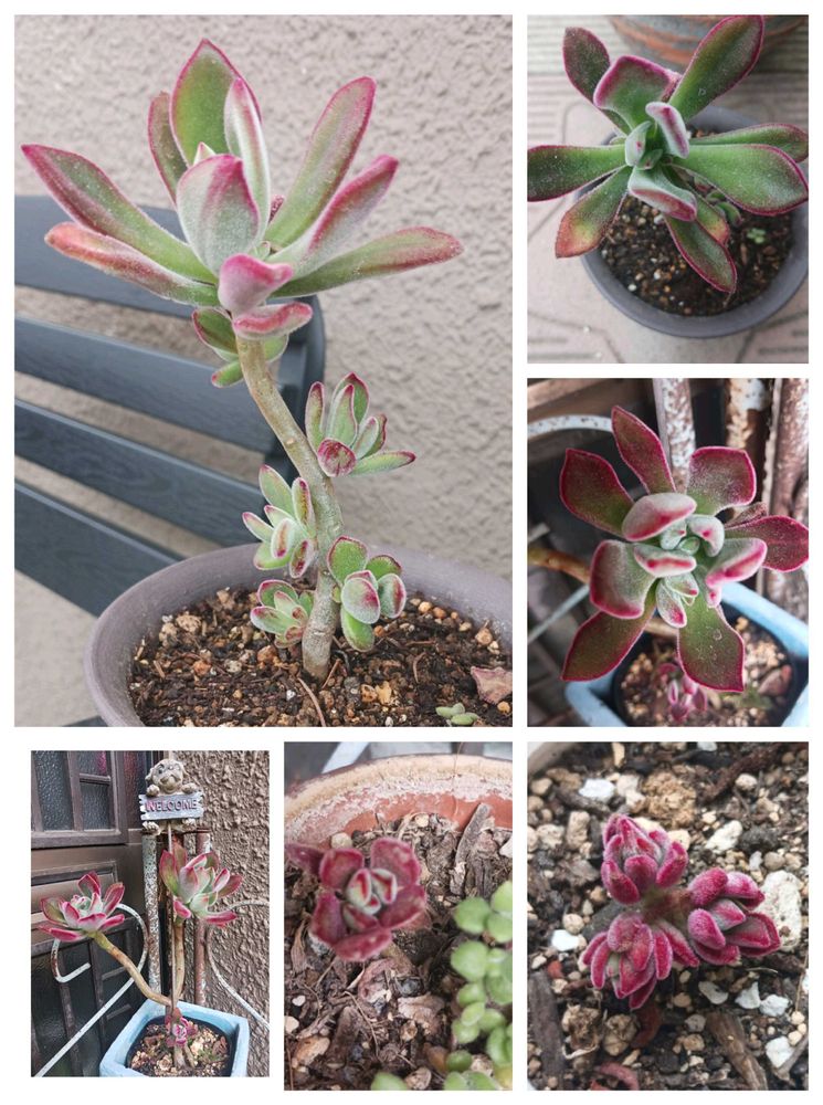2025年4月にネットでたにたのさんの苗を購入した時におまけでついてきた名無しのエケベリアが面白く育っているので、成長記録を作りました。 この子の名前ご存知でしたら、ぜひ教えてください🙏