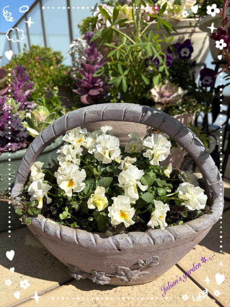 寄せ植えの前には⬅️の白いハーブのウインター セイボリー の可愛お花が咲いてくれる予定です😁