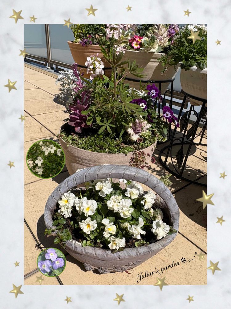 ③後ろの寄せ植えの真ん中にこのモココの後に種まきっ子のルピナスを入れました😉
