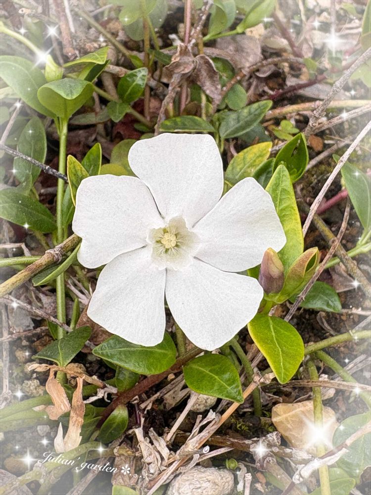 ④ 3年前花友さんから頂いた挿し芽されたビンカ ミノール の白い可愛いお花が今年も咲いてくれました😍