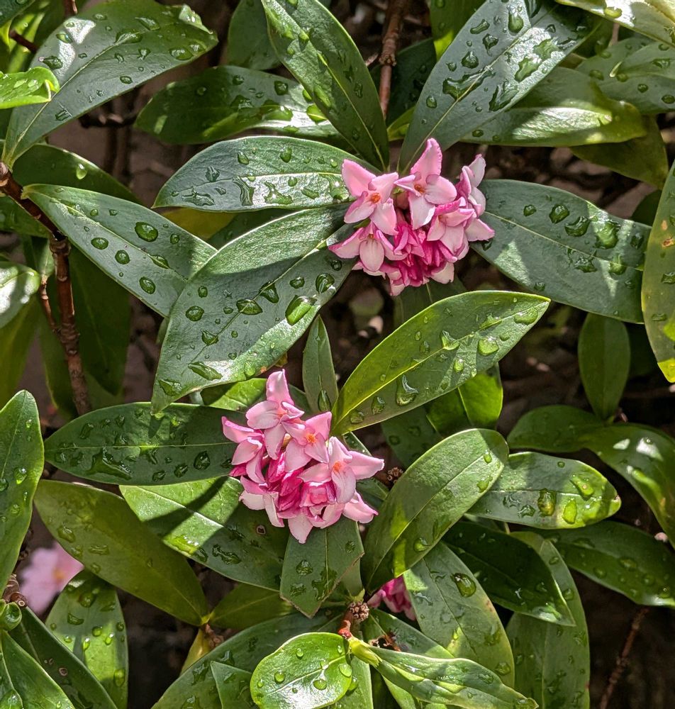 沈丁花、雨降りでしたがピンク色が綺麗に出て良かったです✨