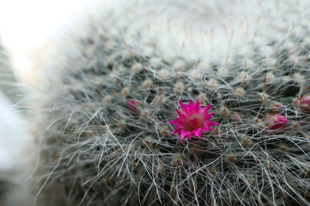 真っ白なサボテンからこんな強いカラーのお花咲くのっていつも不思議に思うわー