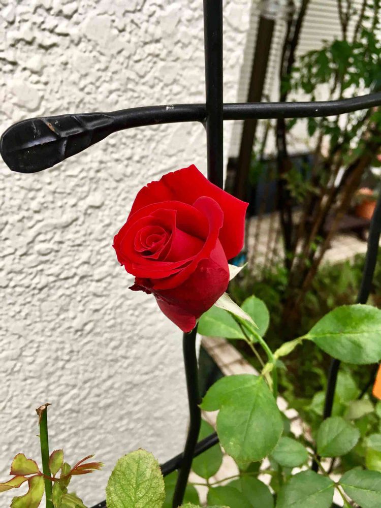 ベルサイユのバラが一輪また咲きました(^∇^)赤が綺麗に咲いてくれました。
