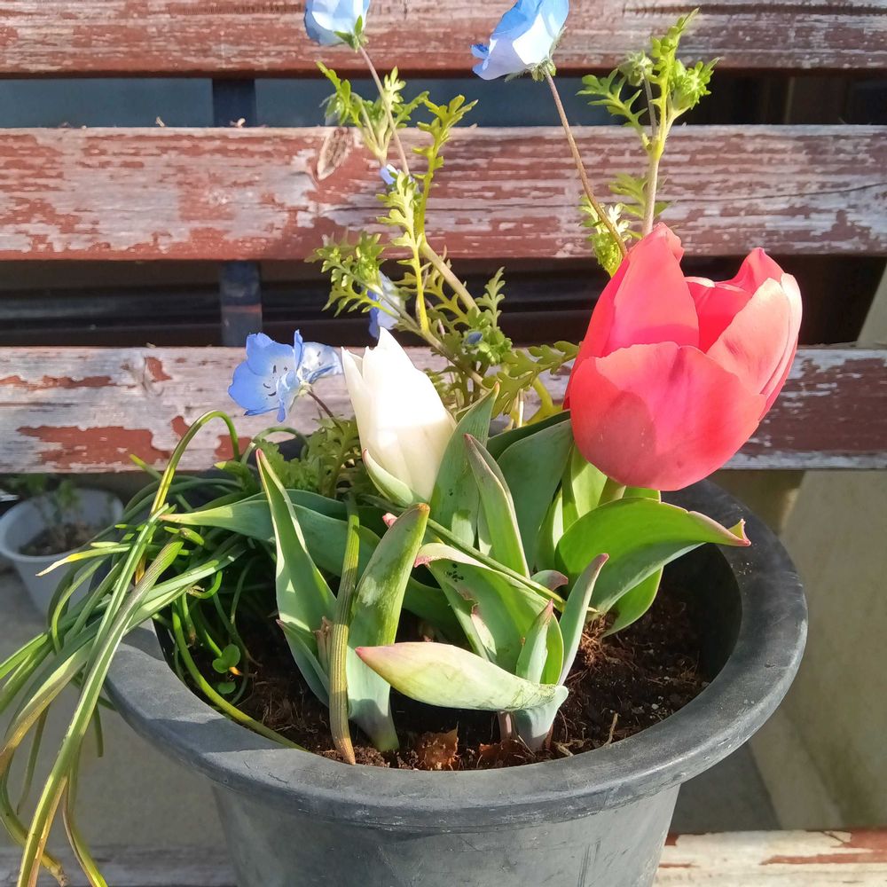 鉢植え 原種チューリップ・サマンサ 開花しました❤️
