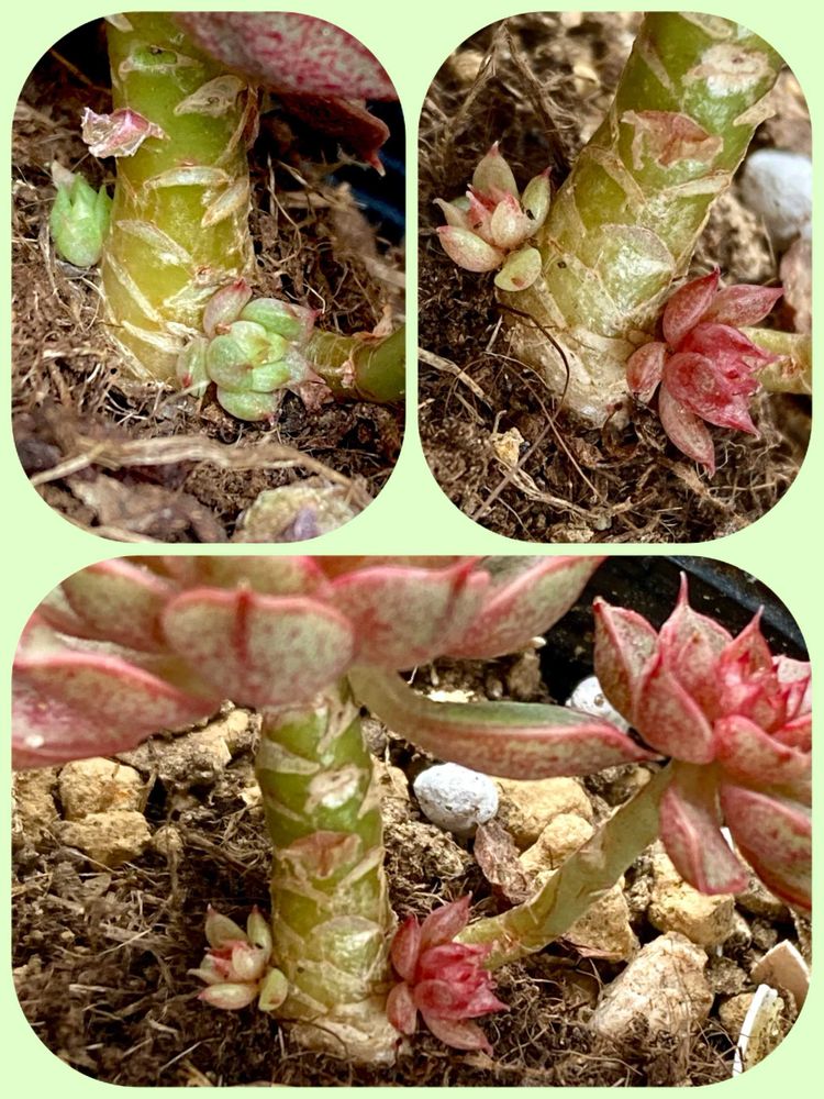 2025年4月にネットでたにたのさんの苗を購入した時におまけでついてきた名無しのエケベリアが面白く育っているので、成長記録を作りました。 この子の名前ご存知でしたら、ぜひ教えてください🙏