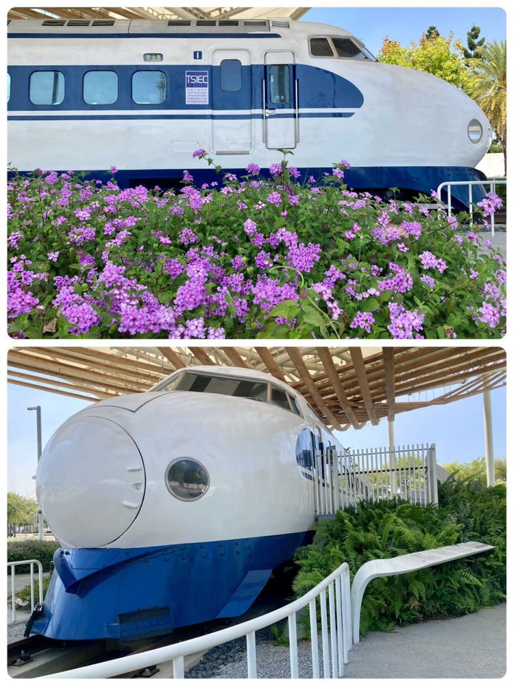 "台湾高速鉄道台南駅"前に展示されている、日本の初代新幹線0系電車の側で出会ったクリーム色の美しい花。