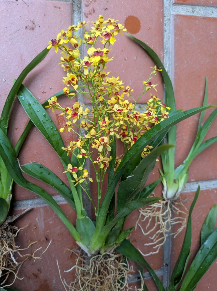 2年前散歩中にオンシジウムばかり30鉢くらい玄関前に置いているお家があったので、色々お話をきいていたら、「いくつでも好きなだけ持って行って」と言われ1番小さい鉢をいただきました。