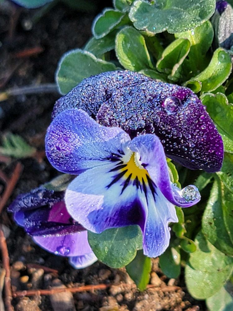 先日 朝の花壇のビオラを見たら 水滴が残っていて キラキラ✨輝いてました🫧