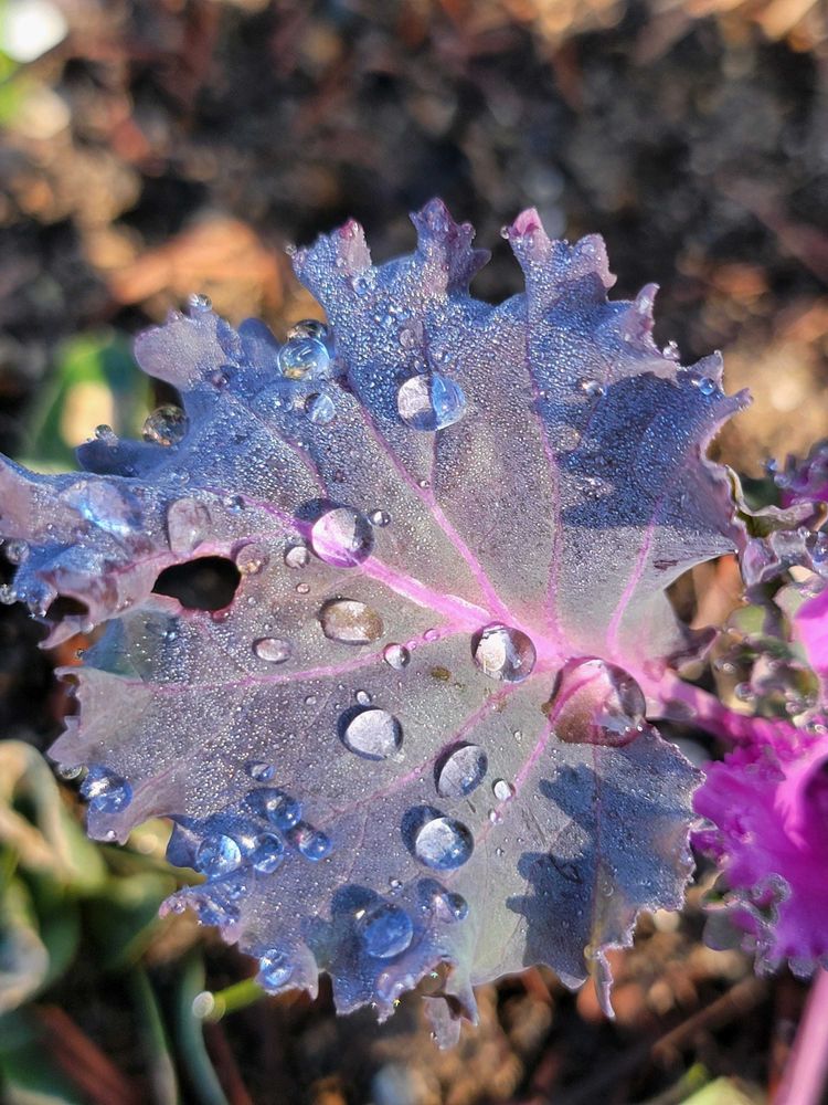 寒い🥶朝に 露なのか水滴が残ってました🫧