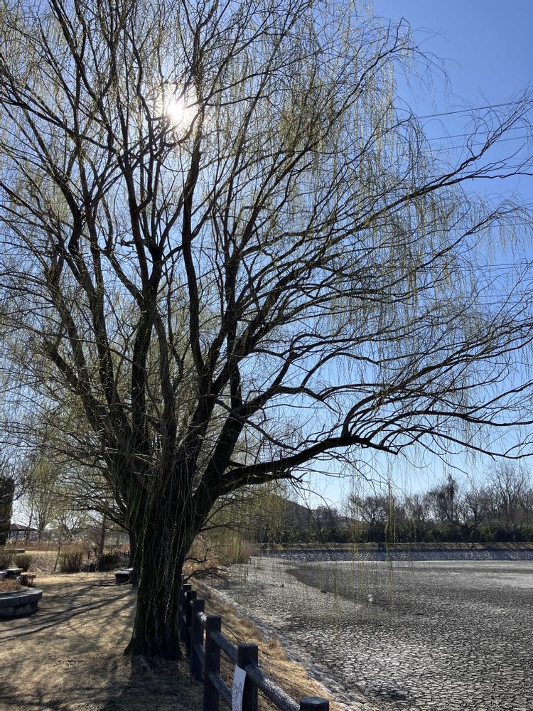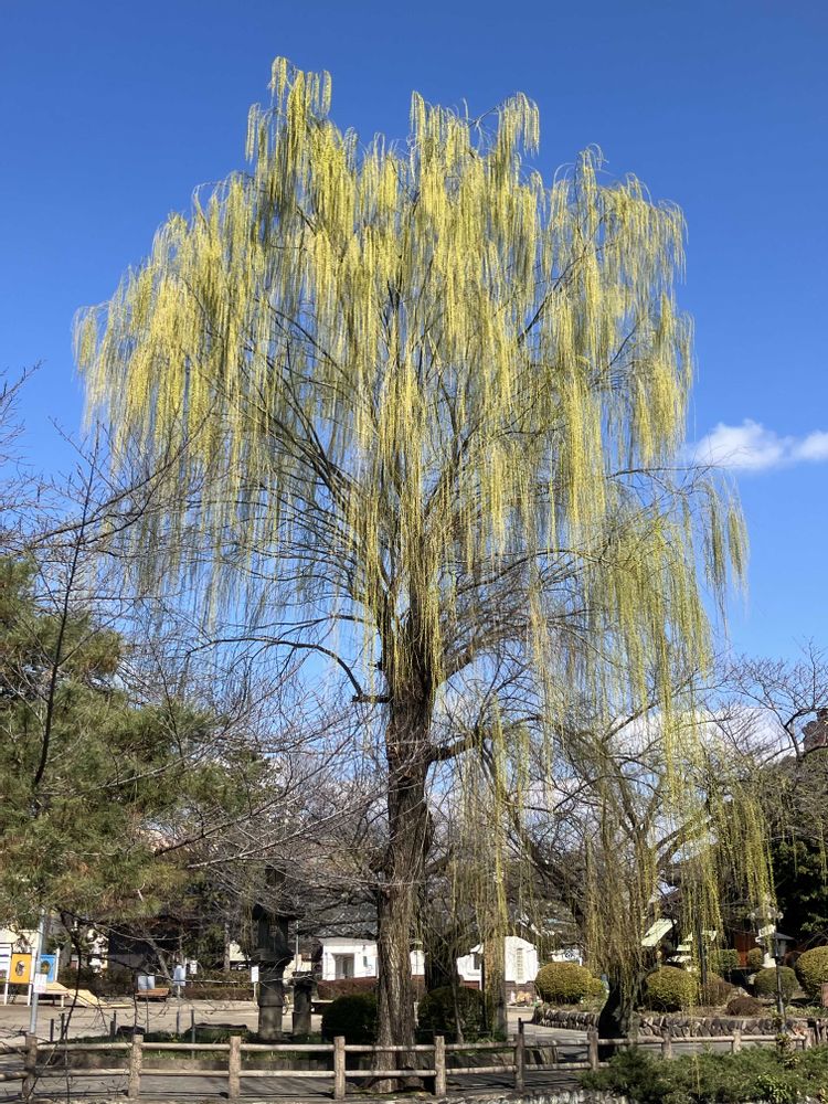 立派な柳の木ですね。陽の光があたるとキラキラキラキラと輝きそうです😍
