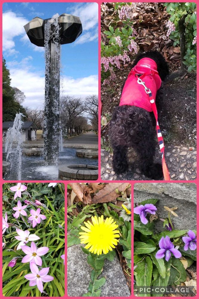 3~4枚目は、ベルとお散歩中の公園の花たち。早速、毛糸の巾着にお散歩ちゃん入れて持ち歩いています💕