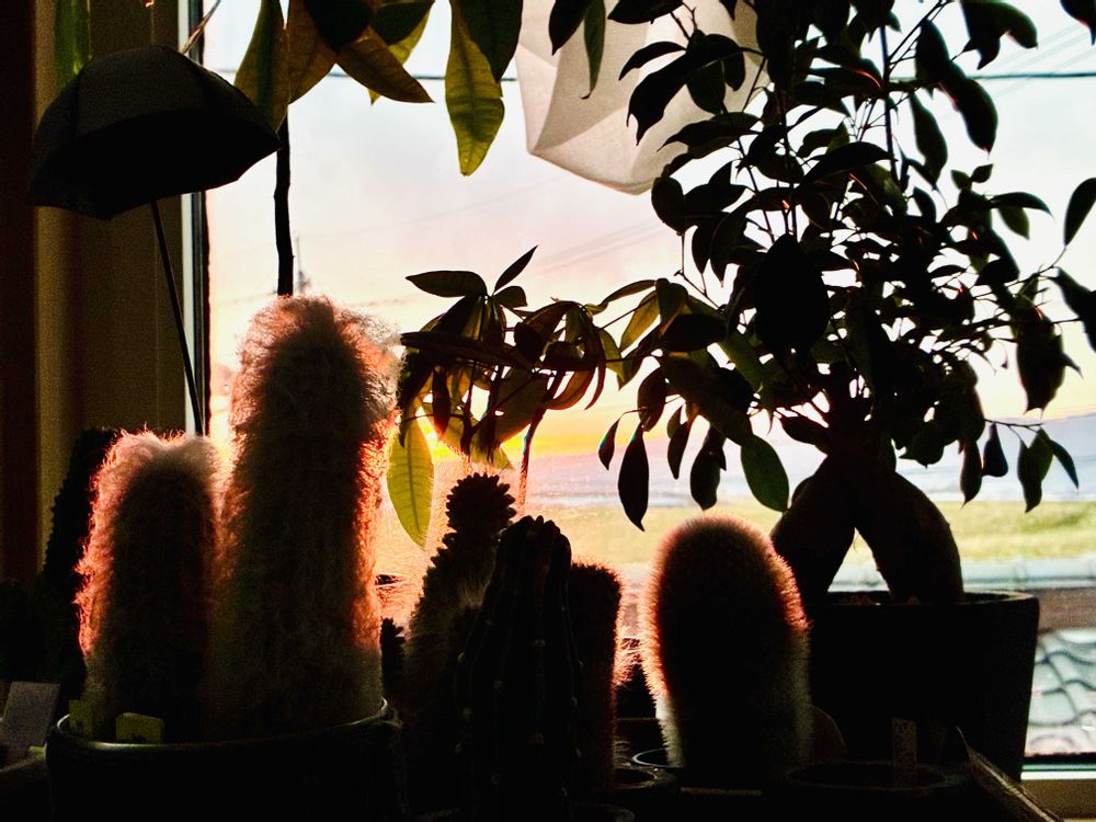夕陽に照らされた🪴🌵、カッコいいです😍