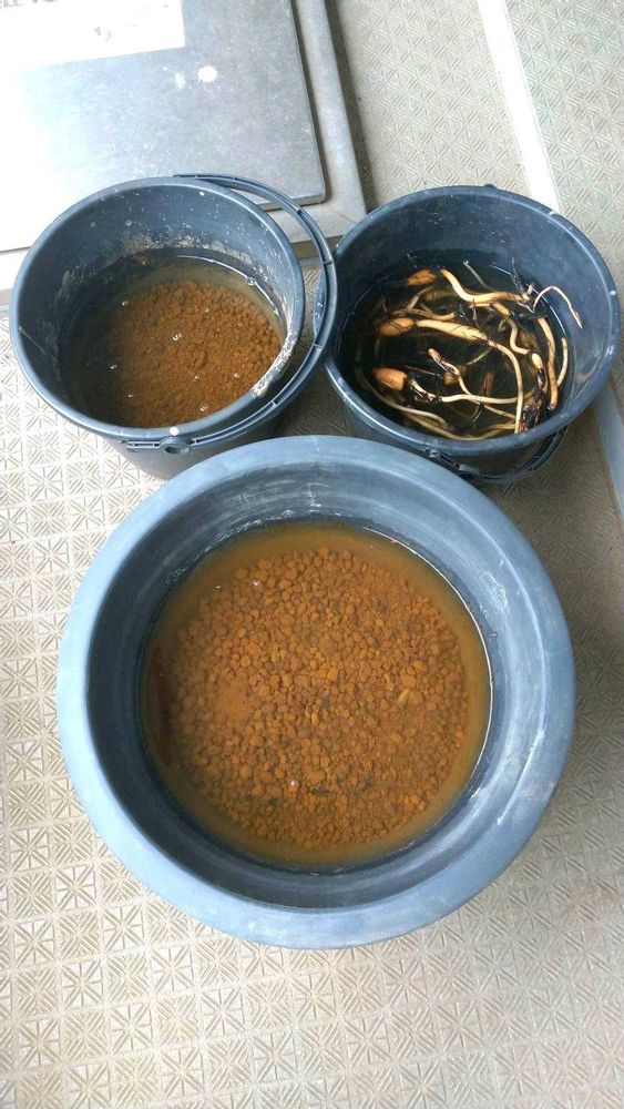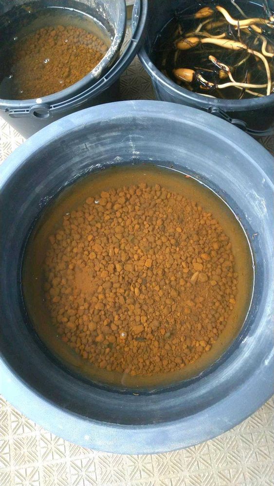 私もハスやスイレン等の田土は、カルスのおかげで買ってません♪残渣と混ぜて1年寝かすとドブの匂いもなく良い土になってますよ〜!一応夏ぐらいに撹拌したのと、植え替え前に寒風に晒しました♪