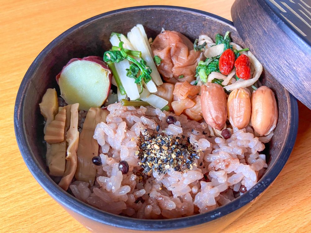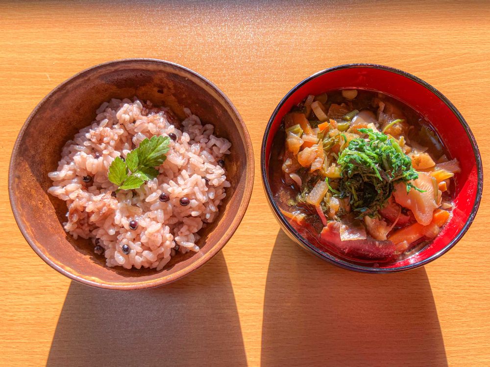 ご飯もタンキリマメさんに色のお裾分けを貰ってお赤飯みたいに優しい色を纏っていらっしゃる