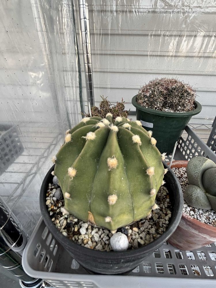 実生3年目の刺無短毛丸、アマビエと格好が似てきました🌵