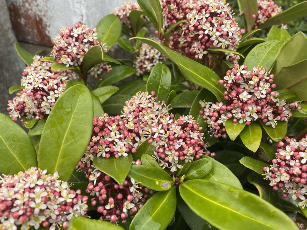 スキミアの花が可愛く咲いています🤍🤍🤍°•·°•· ✿ ✿ ·•° °•· ✿ ✿ ·•°🤍*✶❦❦✶*🤍°•· ✿ ✿ ·•° °•· ✿ ✿ ·•° 🤍