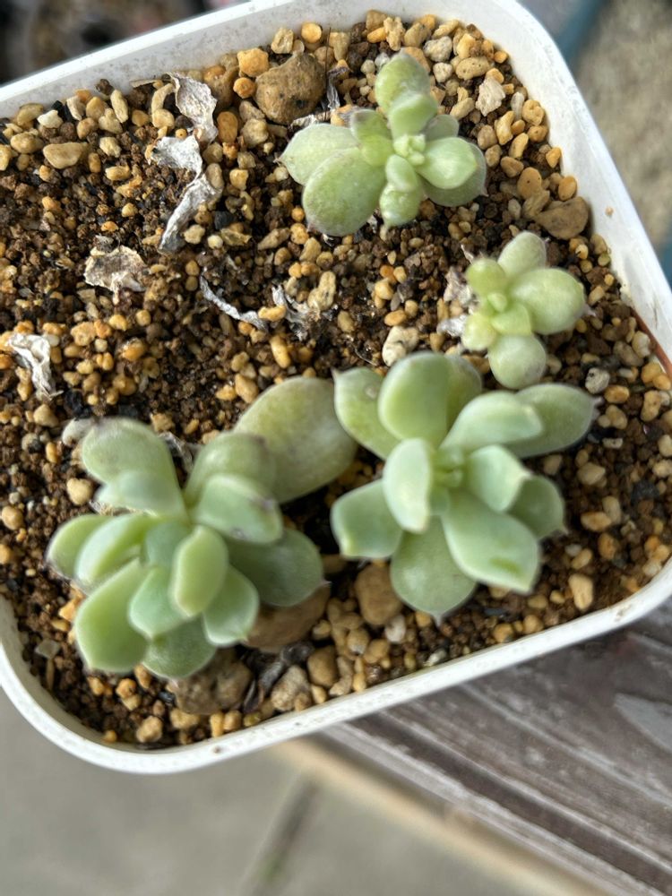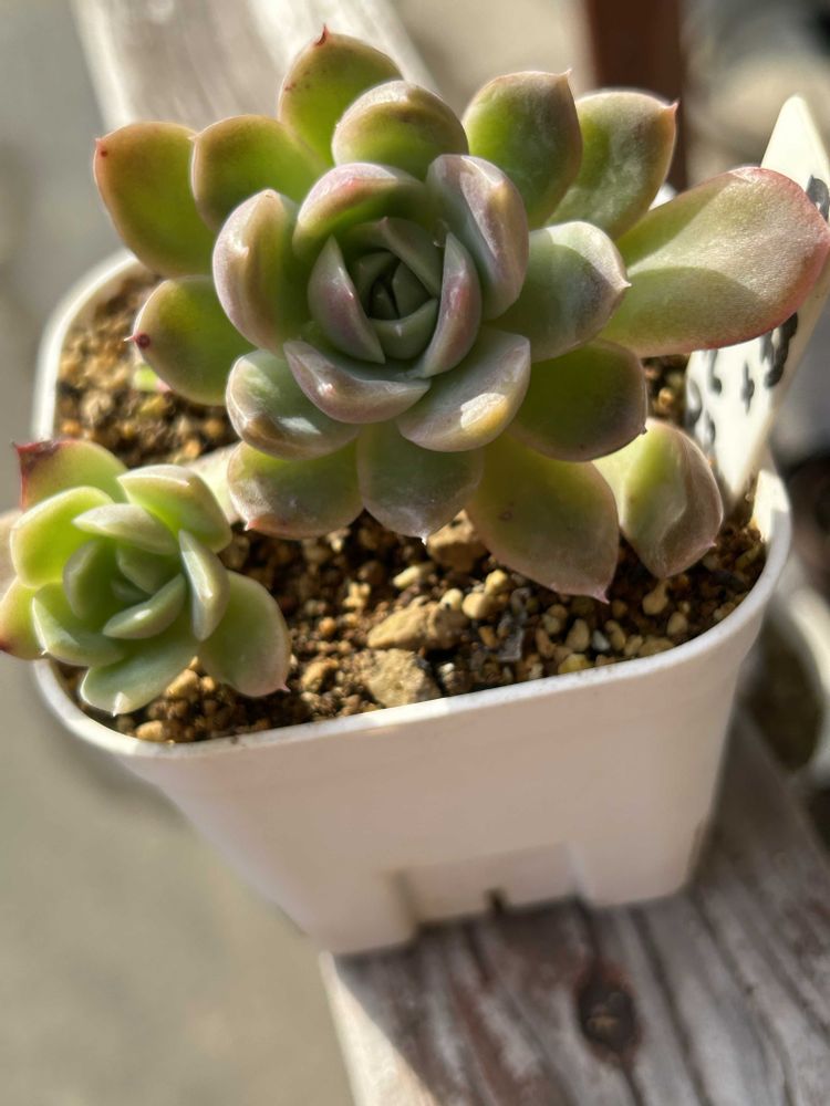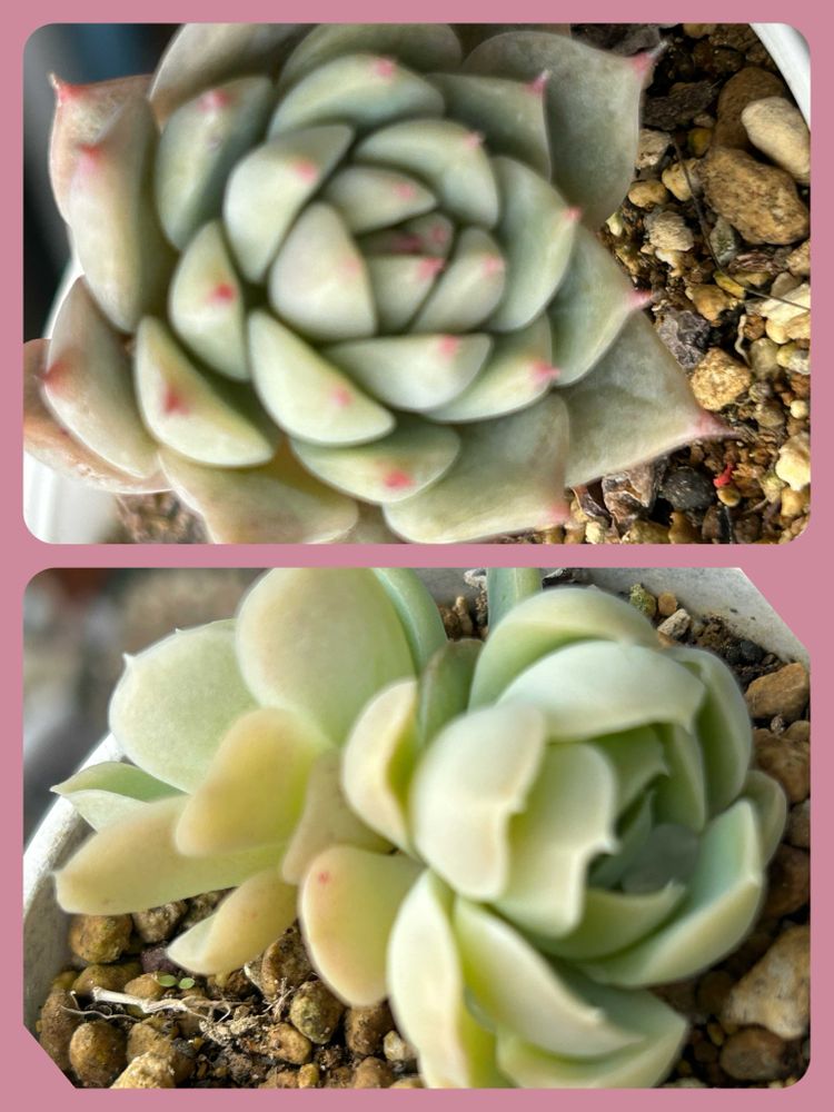2025年4月にネットでたにたのさんの苗を購入した時におまけでついてきた名無しのエケベリアが面白く育っているので、成長記録を作りました。 この子の名前ご存知でしたら、ぜひ教えてください🙏