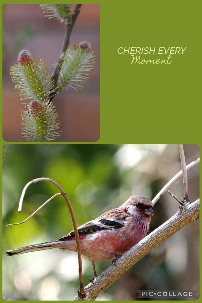 ネコヤナギが咲き始めた公園で、ベニマシコ♂に会いました❤️