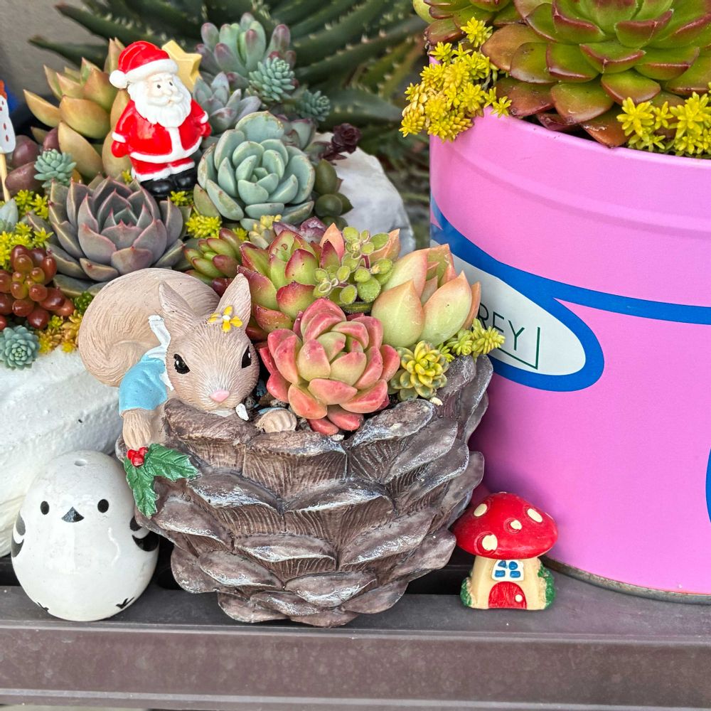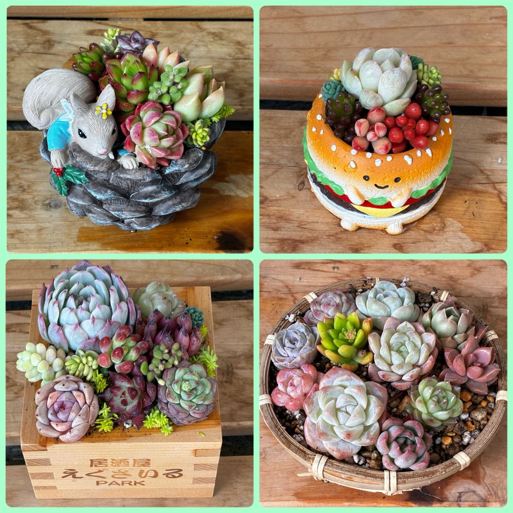 多肉植物の寄せ植えワークショップに参加したら、多肉ちゃんにハマってしまいました。 最近育て始めたばかりの初心者🔰です。2024.2〜 ハンドメイドも大好きで、元々デコパージュ(ペーパーナプキンを使って様々な物に貼り付けて加工する)を教えたりもしていました。