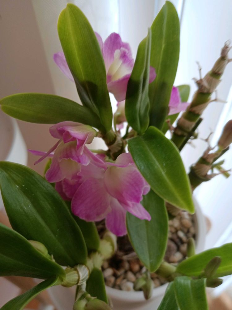 家で、育てているデンドロビウムです。去年買った物がまた咲きました。