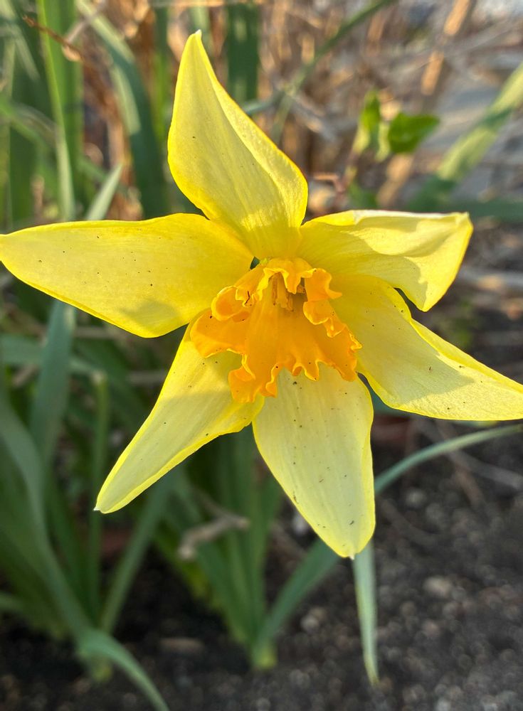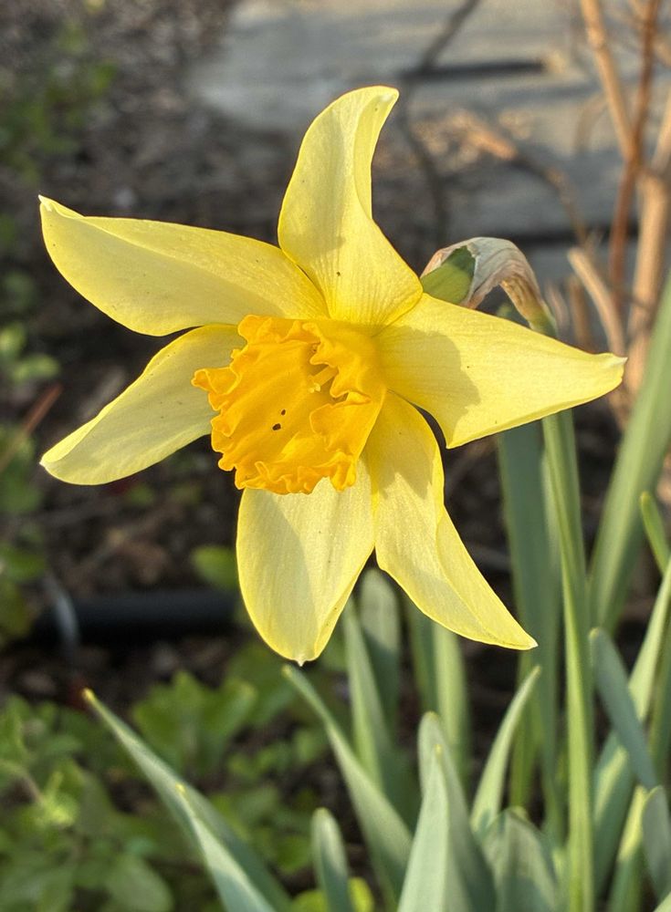 道路沿いのかだんにて、黄色いお花「ラッパズイセン」をパチリ!📸💛🌿😊😄👌