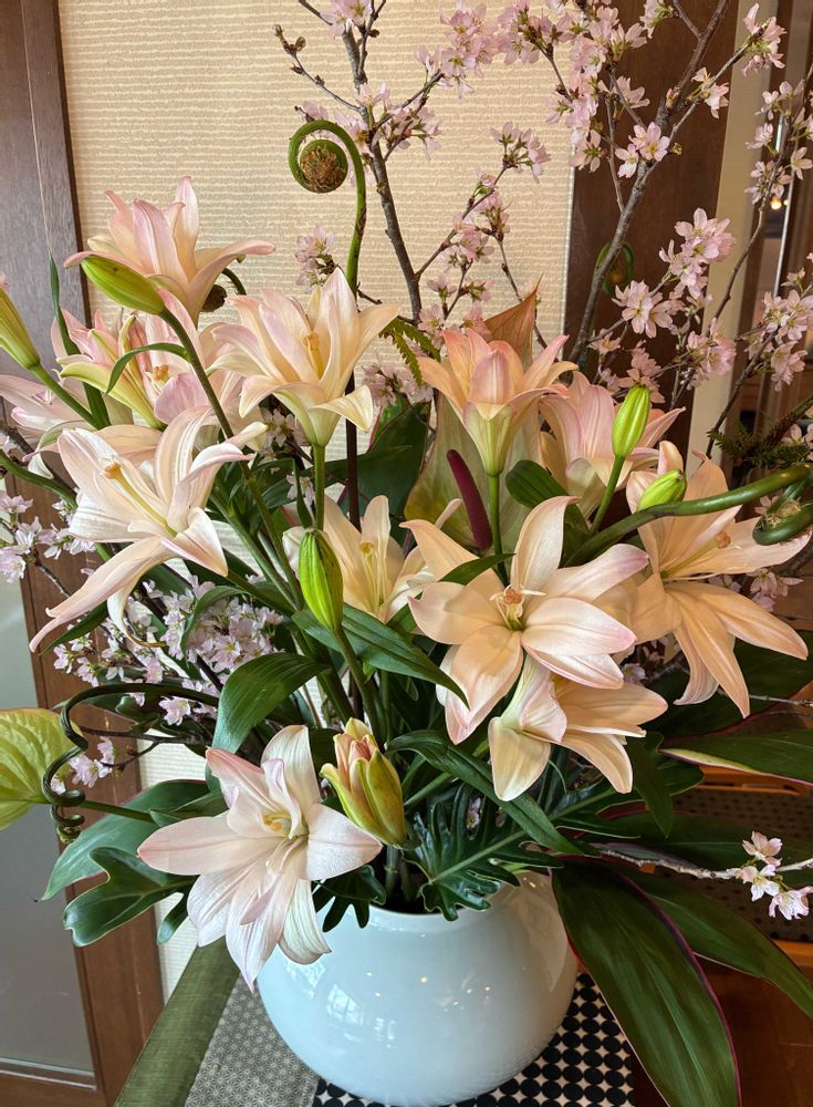 今日行ったレストランにて、「ユリ」の生花や「観葉植物」をパチリ!📸🏺🌸🌿🌞✌️