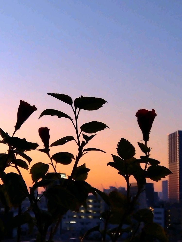 ハイビスカスと夕焼け