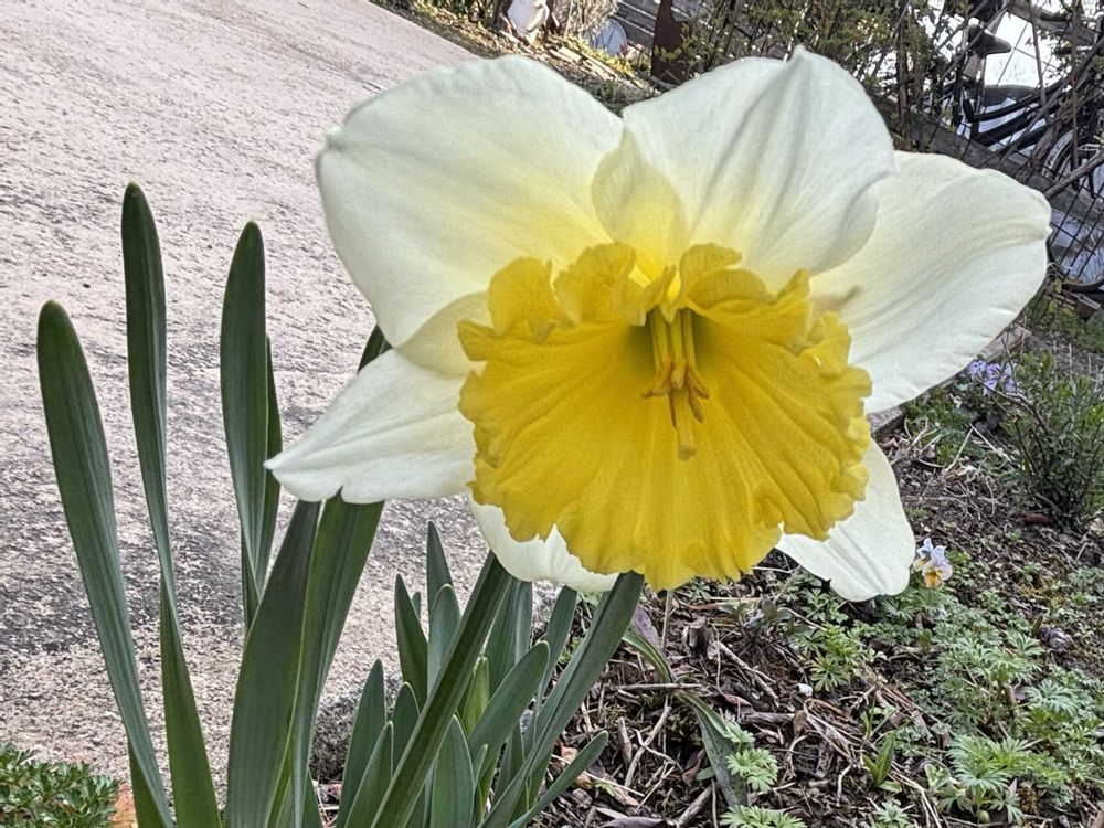 白いスイセンが欲しくて3年前くらいに植えたこの子。反対向きに咲くからせっかくのお花が後ろ姿💦