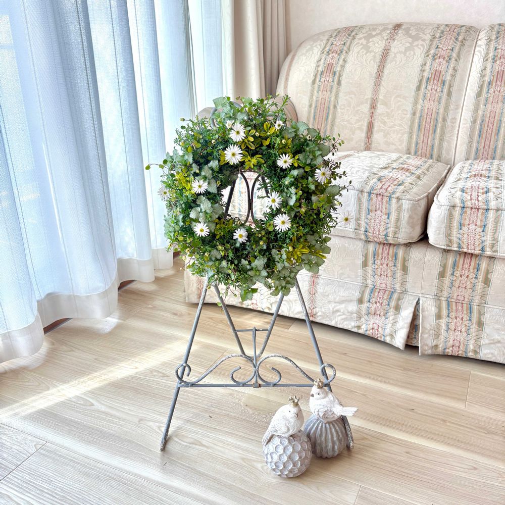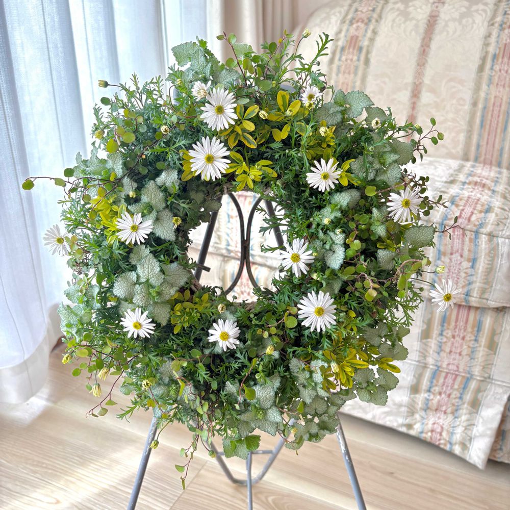 爽やかな草原で花摘みをして作ったようなリースができました