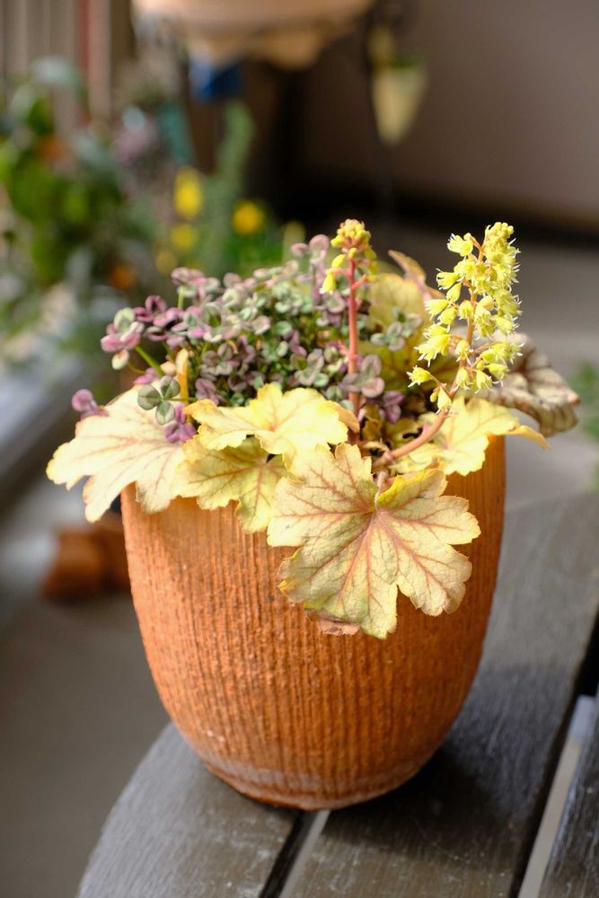 ヒューケラとクローバーの寄せ植え🍀