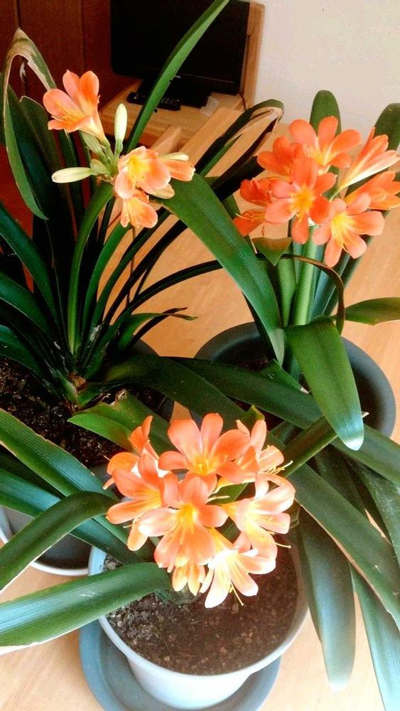 うちの室内温室のクンシラン(君子蘭)もほぼ満開に開花しました。