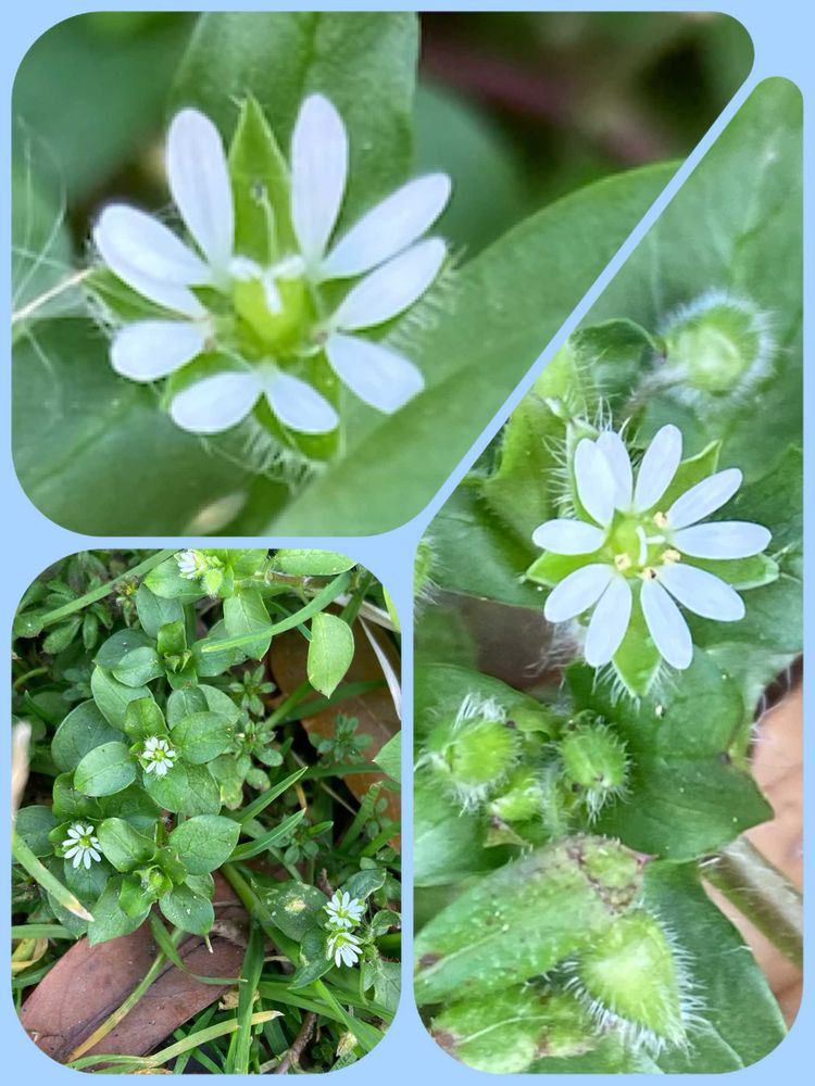 ハコベのお花、小さすぎて、拡大鏡持ってお散歩に出かけないとよく見えません〜