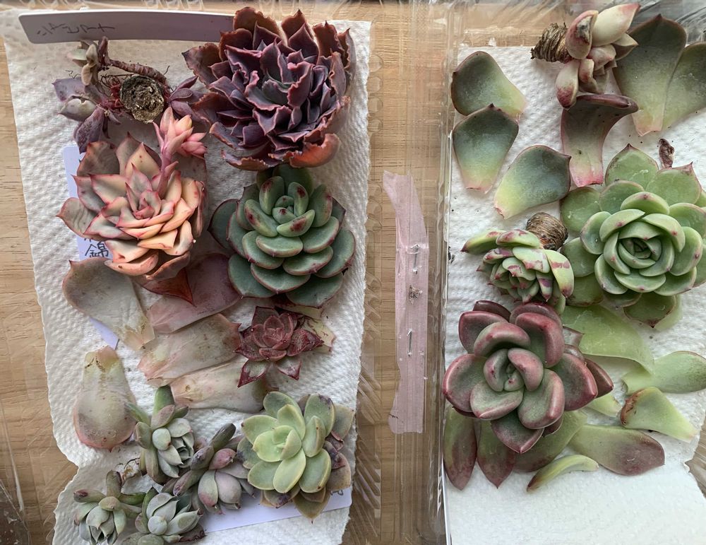お姿が傾いた子、塔立し過ぎた子を切ってみました✂️and大きめの葉を葉挿し用に取りました。