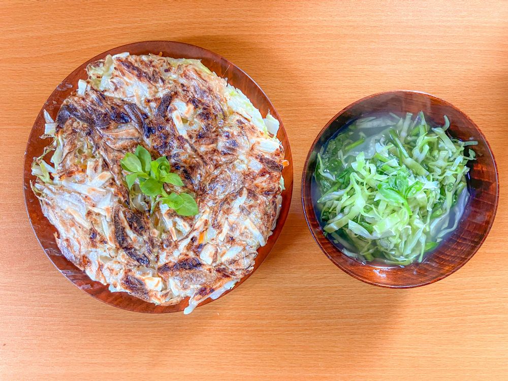 野が春のご馳走野草さんだらけで食卓も胃袋も大忙しなので 元氣チャージの自然薯さんとお腹の味方春キャベツさんをお迎えしてお好み風に