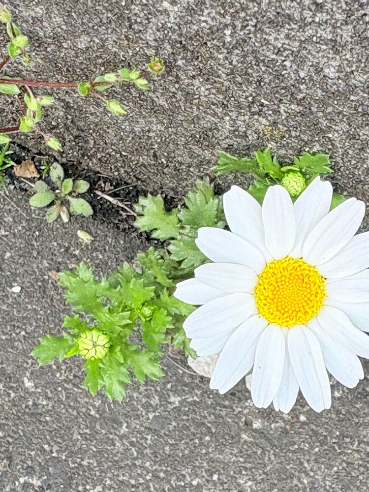 5️⃣コンクリートの隙間から咲いてるノースポール🌸こぼれ種はどこでも花を咲かせる👏👏👏