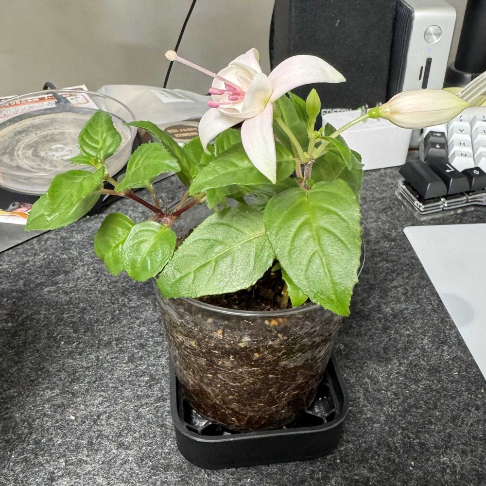 ちょっと前に挿し木したフクシア、咲いた。すご。
