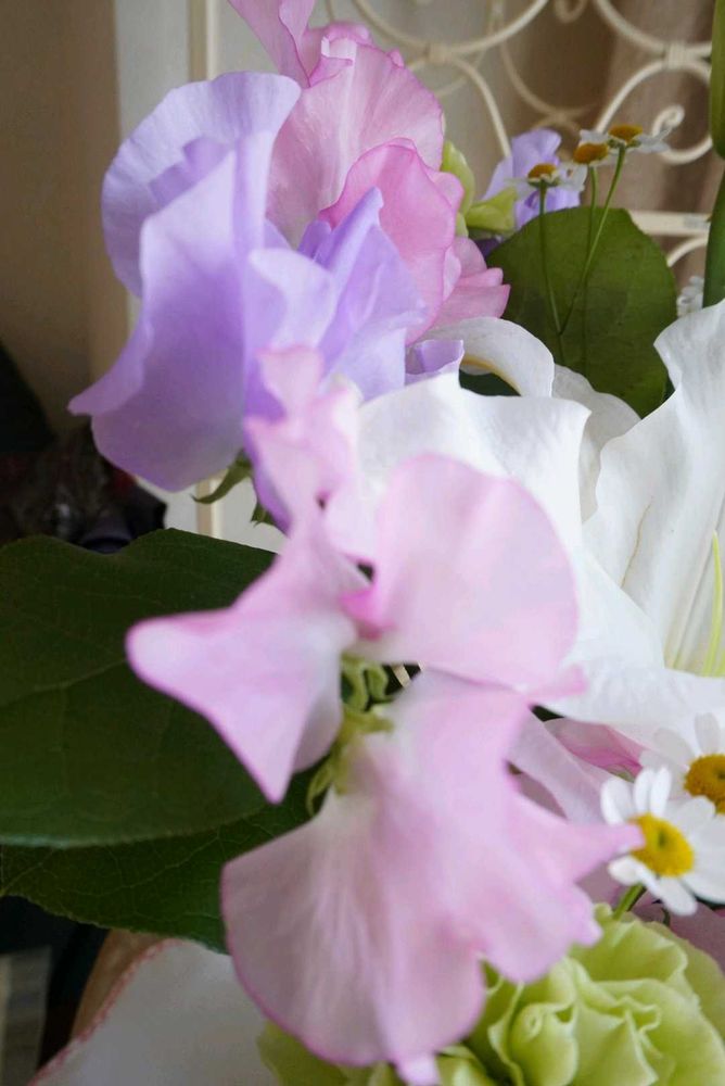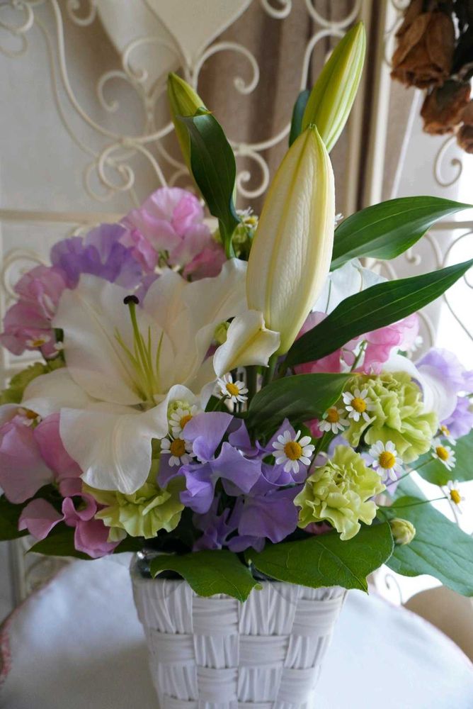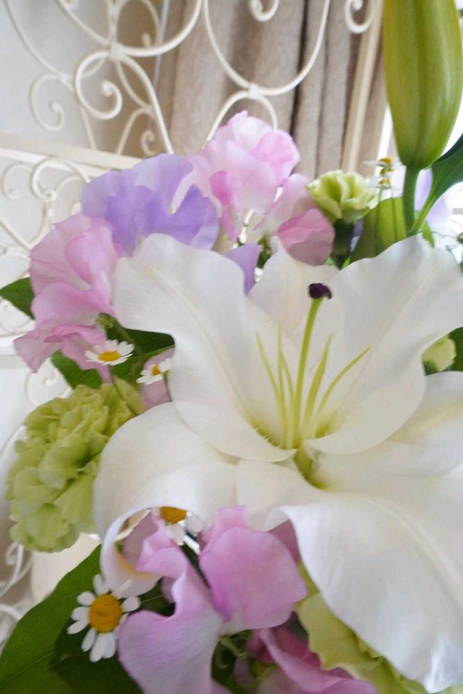 カサブランカ・スイートピー・カーネーション・カモミール