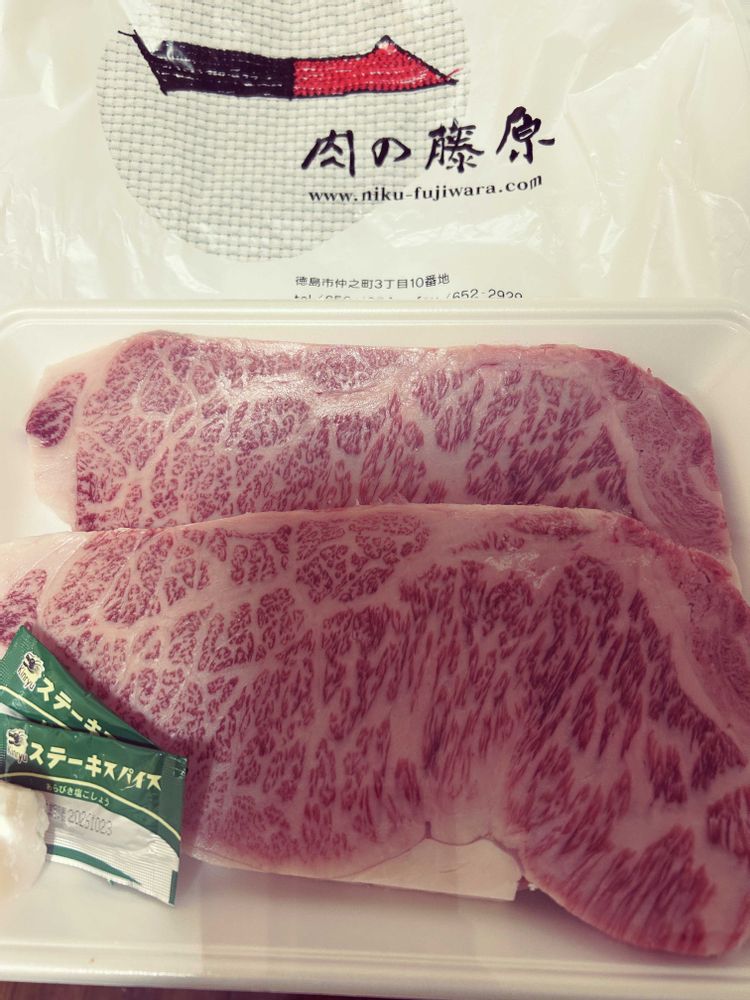 頑張れ!って応援の気持ちで、阿波牛のステーキを一緒に食べました。