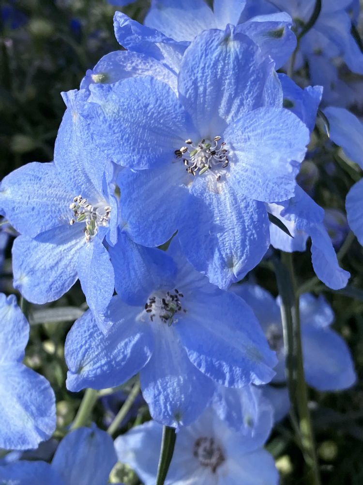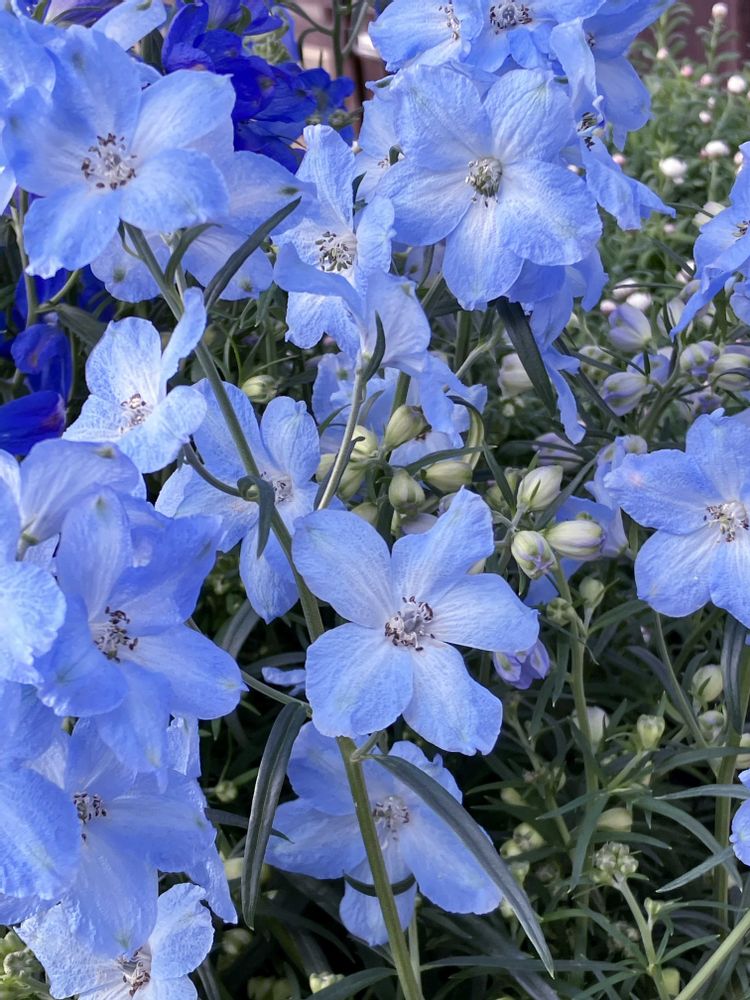 ふわふわとした青い花をたくさん咲かせ色味も広く水色の花を咲かせるものから鮮やかな濃い青色の花を咲かせるデルフィニウム
