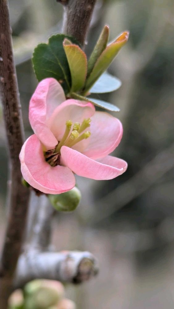 淡い色で素敵な木瓜の花