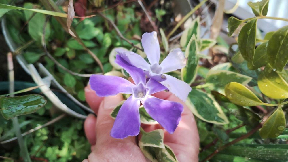 貰った大根、あら!とうたちして花咲いてきた🙏ツルニチニチソウの花2色なってるよ、長年咲かなかった、待ち遠しかったよ嬉しい😄🥹椿挿し木2色も咲きそう!