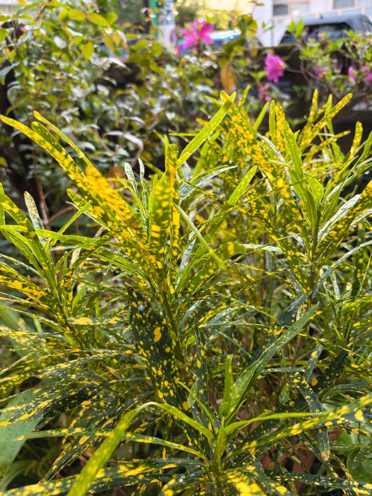 ①クロトン リュウセイ 中央部に大きな葉っぱが🫢先祖帰り?交配種だったのかなぁ❓