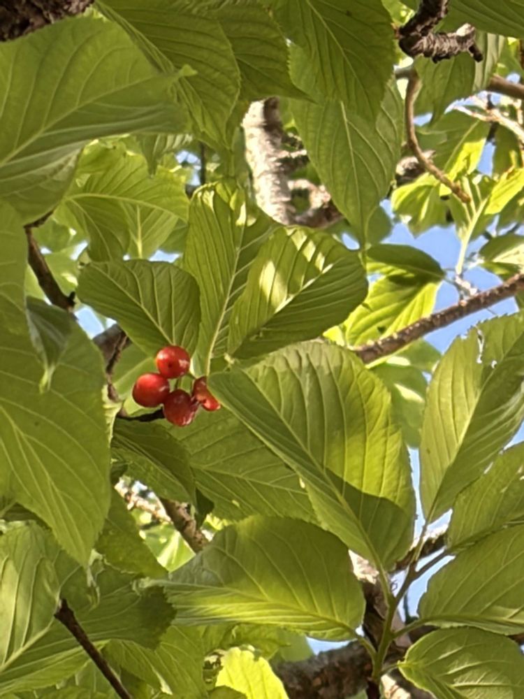 ④寒緋桜のさくらんぼ🍒イペーの花撮ろうとして見つかりました。こちらも高所なので拡大してやっとこのサイズ