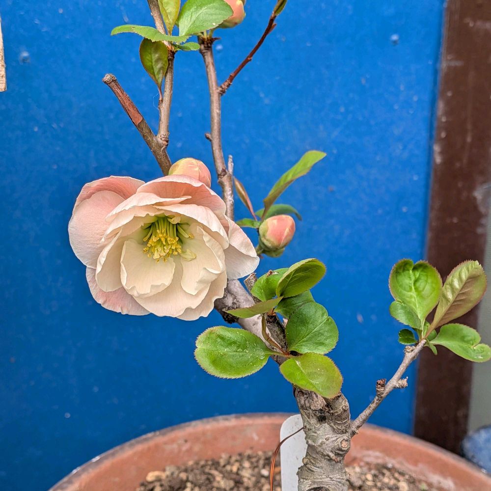 今日の花、ボケ、我が家の盆栽ボケ、咲いてます、