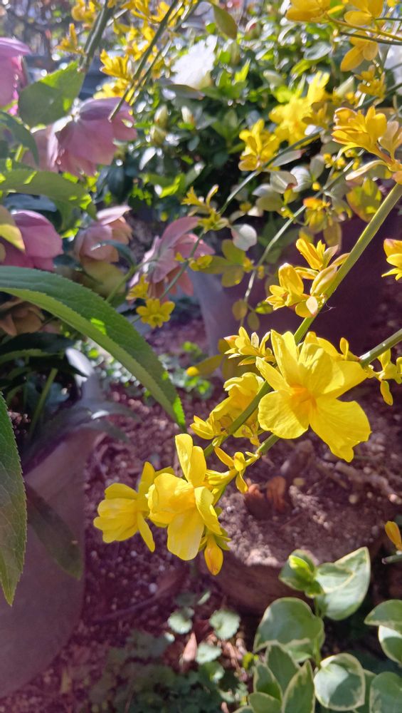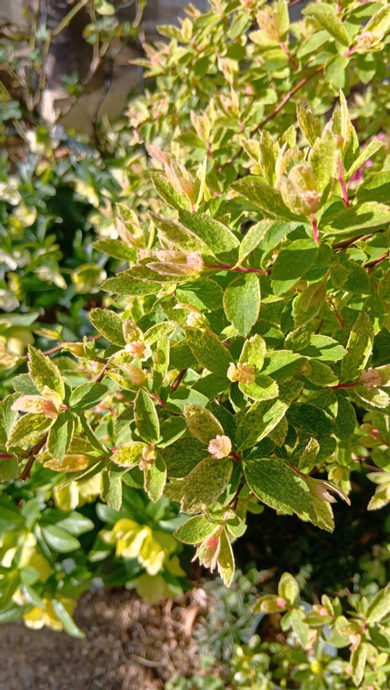 フジセツさんのをヒントによくよく調べてみたら『プリムローズジャスミン バリエガータ』のようです🌿和名は『ウンナンオウバイ』‼️普通のウンナンオウバイと違ってウチのは黄色い葉っぱのタイプ。ありがとうございます😊