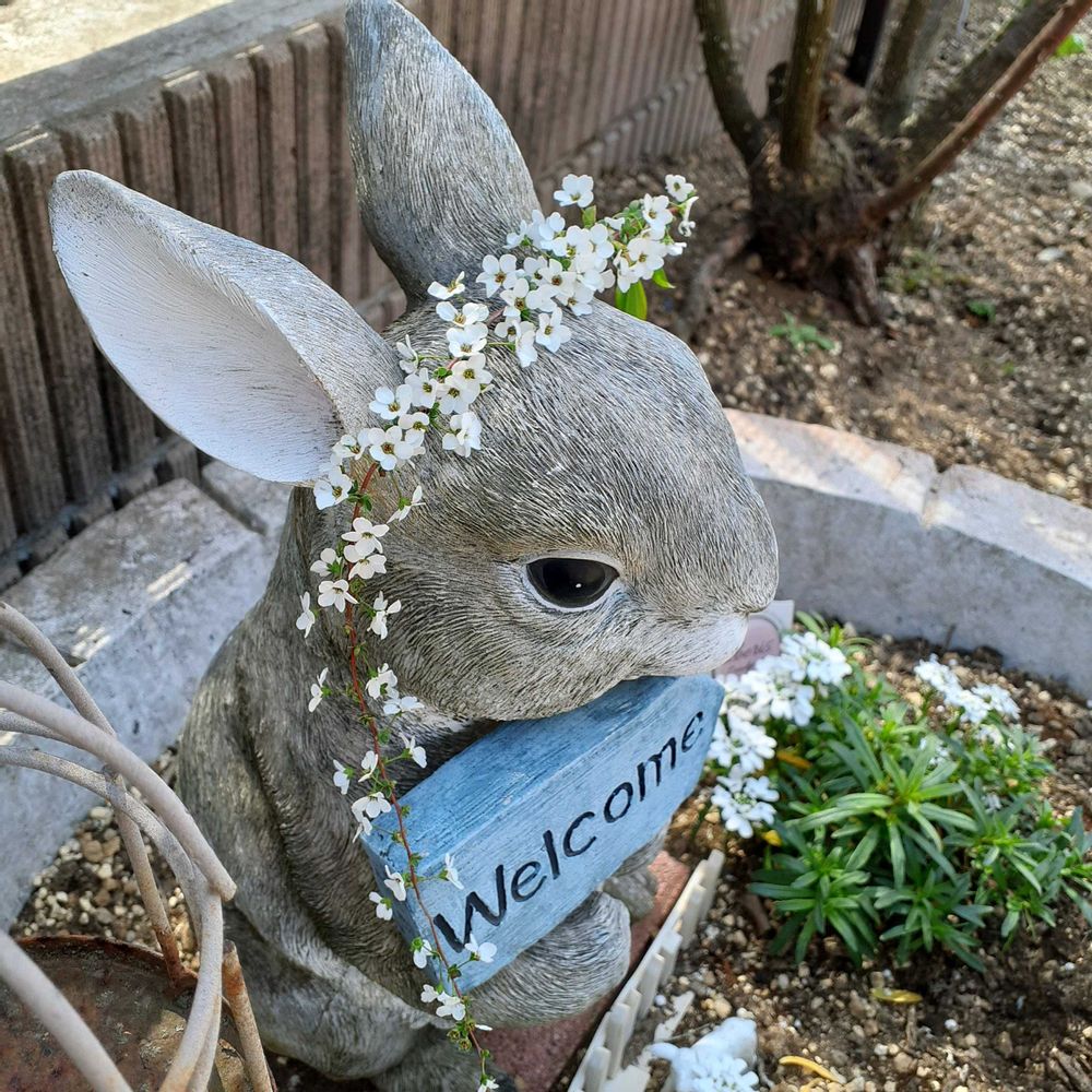 うさぎ🐰最初ビオラ乗せたんですがユキヤナギのほうがカチューシャみたいで可愛かったのでupしてみました~✨