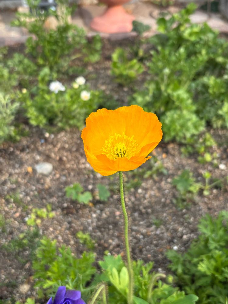 こぼれ種のポピー、ポツリポツリと咲いています。